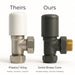 The straight valve configuration allows the pipe to connect directly into the radiator or towel rail without a bend, creating a neat and aligned installation. This makes them particularly well suited to wall-chased pipework commonly found in renovations, retrofits, and contemporary bathroom installations.